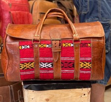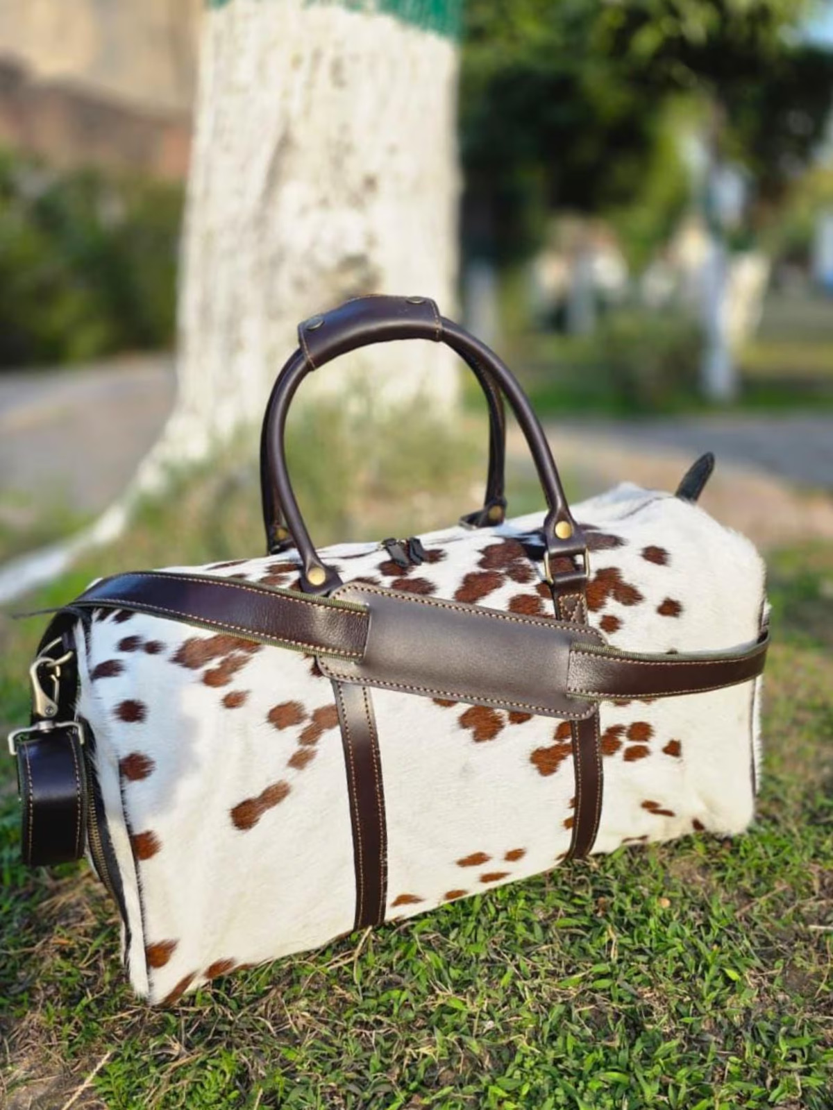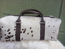 Handmade cowhide Leather Duffle bag Real Hair on Weekender Travel Bag for Unisex