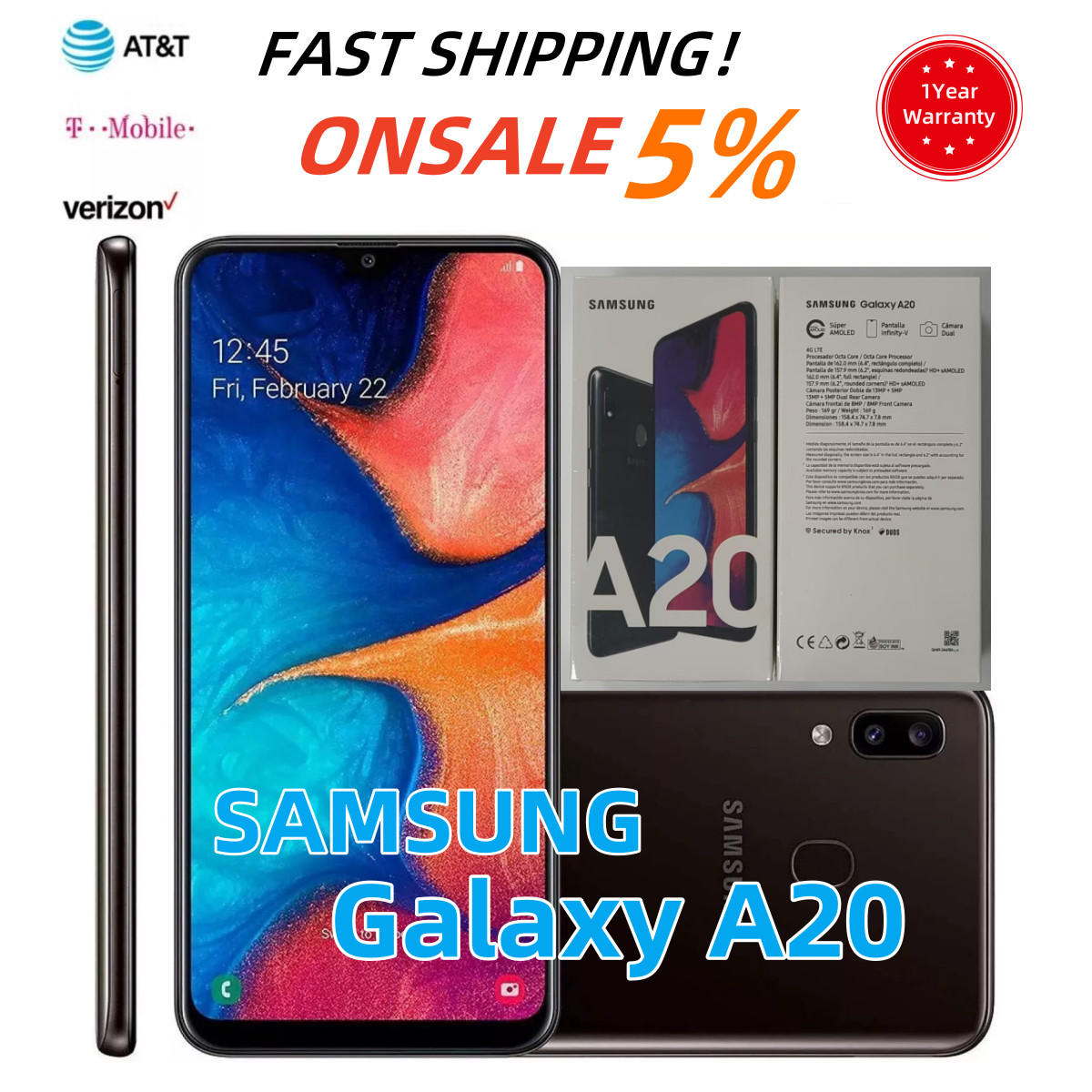 Brand New✨Samsung Galaxy A20✨SM-A205U 32GB+ 3GB Black 6.4" Unlocked Smartphone