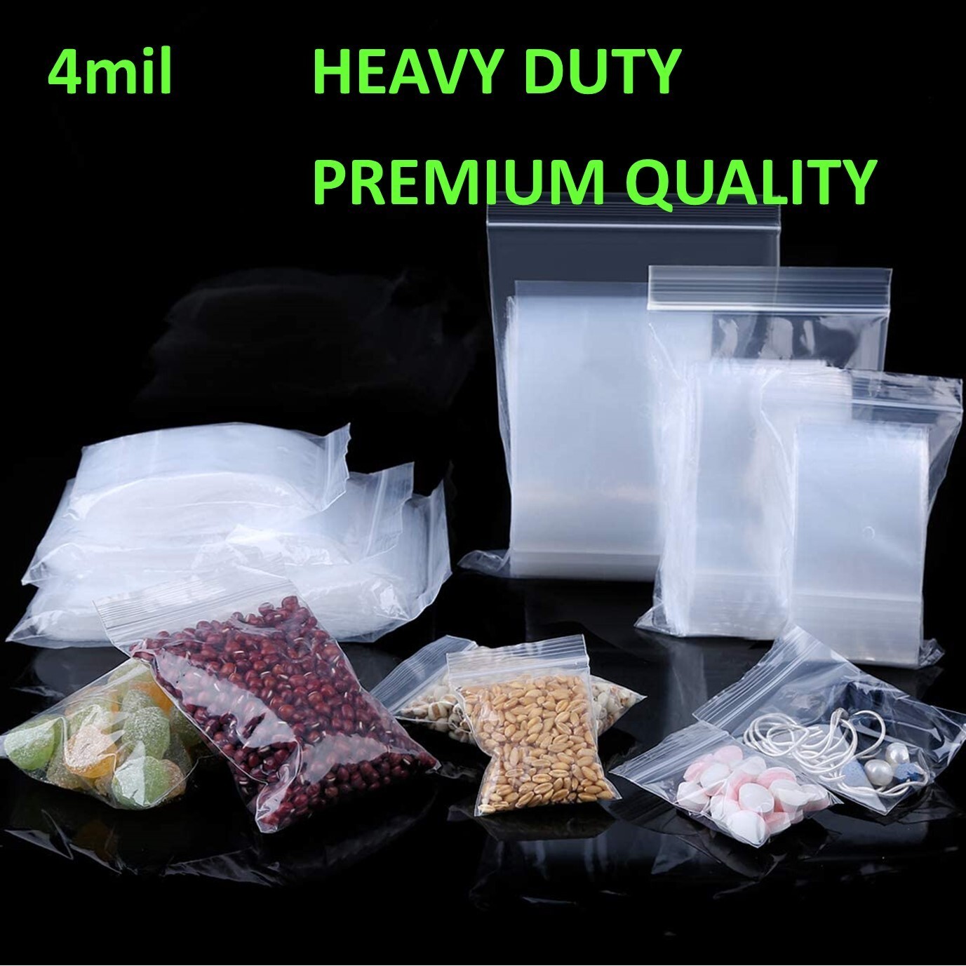 Heavy Duty Clear Zip Seal Plastic Bags Jewelry Top Lock Reclosable Baggies 4 Mil