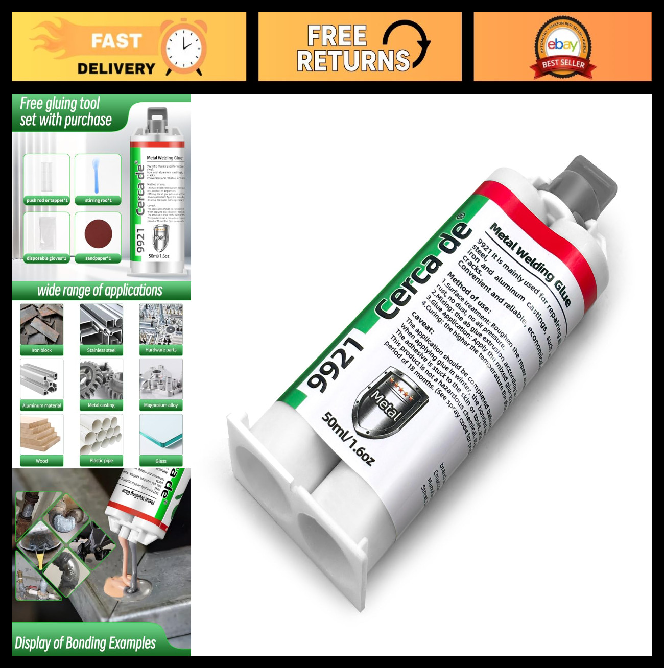 High-Quality Bond: Once cured, it forms a robust and stable bond that outperforms traditional epoxy resins. Versatile Applications: Ideal for repairing fuel tanks, pipes, broken concrete, water tanks, plastic buckets, boats, cars, heaters, vases, fences, car bumpers, and motorcycle cracks.