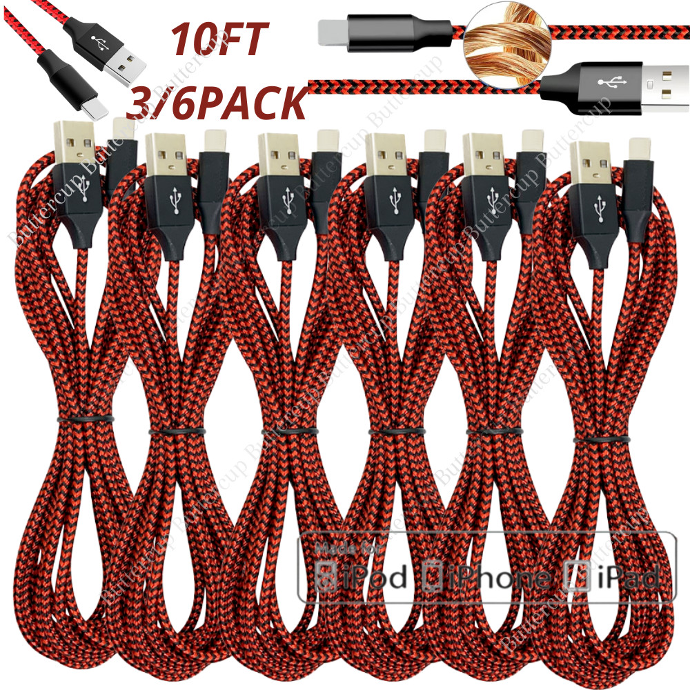 3/6Pack 10FT USB Cable For iPhone 6 7 8 13 12 11 14 Pro Max X XR XS Charger Cord