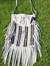 Step into authentic western style with thisgenuine cowhide and leather crossbody bag, designed with bold fringe details and a unique natural pattern. Strap: Adjustable leather strap for crossbody or shoulder wear.
