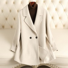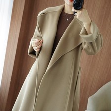 Women Double Sided Wool Cashmere Long Coat Overcoat Double Breasted Loose Winter