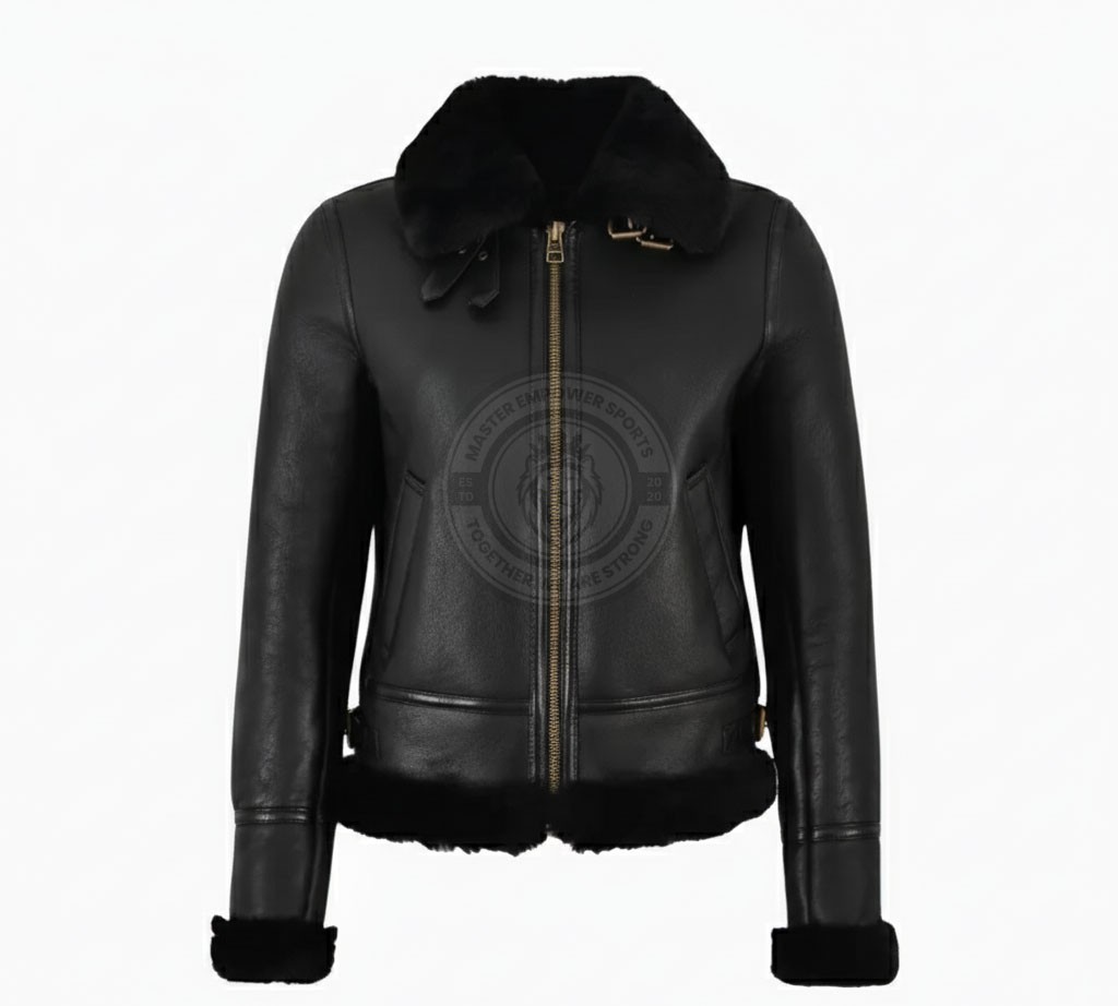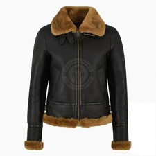 Women's B3 RAF Bomber Brown & Black Aviator Flying Fur Shearling Leather Jacket