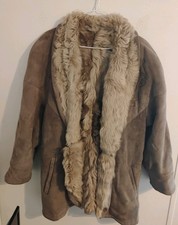 Vintage Shearling Sheep Skin Women's Coat Size 44 Suede Leather Fleece As Is