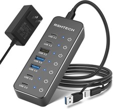 7-Port Powered USB 3.2/USB-C Hub Splitter with 3 X 10Gbps USB-3.2 Ports (2C + 1A